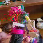 Isolde is a handmade spirit doll whose presence feels deliberate, layered, and quietly commanding. Every knot, wrap, and binding in her form serves a purpose. The smaller doll attached to her is not symbolic decoration. It is integral to how her energy operates.