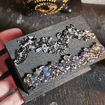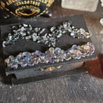 Crafted by me during full ritual with love and intention, this one-of-a-kind manifestation box is a small but powerful. Painted in soft black lineage herb steeped ink-paint and adorned with aura quartz crystal and mini clear quartz crystal points on top and multi crystal chips on the interior sealed in resin for longevity.