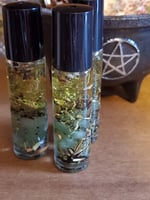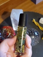 My oil blends are created during my personal lineage rituals using my own blends of oils, herbs, salts, and powders. The energies of intention are further enhanced with crystals and sound.