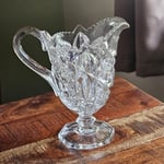 A stunning vintage 1870 - 1930 E.A.P.G. cut glass pitcher featuring a gorgeous pattern and scalloped design with a gracefully curved spout and handle—this piece is full of charm and potential. It has been spiritually cleansed and ritually blessed, making it ready to serve as a sacred vessel in your personal practice.