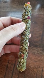 Option 2: If you would prefer to not use the standing method, the Ritual Candle can fit into a candleholder. Please note, each candle is handmade and the width slightly varies. You may need to shape, scrape, or add foil to the bottom to fit your holder OR you may choose to fill a cauldron or dish with salt or sand to stand your candle up in.