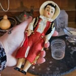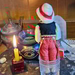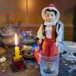 Sebastian is a vintage doll whose presence feels deliberate and composed. His attire is formal, almost ceremonial, and the small, old-style book attached to him is not decorative. It is central to how his spirit works.